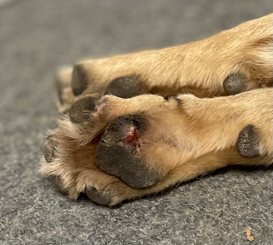 After some days he strolled across the alleyway and next thing I hear was a big fight and scream. When I stepped outside, I spotted Raindrop flat on his back and a lean grey/white Pittbull on top of him and he won't let go of his front paw. I stepped in just armed with a handful gravel, threw it in the ring and the Pittbull eventually let go. Raindrop was badly hurt, his pad almost cut in half, one toe slit as well. He limped back, blood everywhere. So he started to eat his piece of humble pie and licked his paw. At that moment, there was nothing I could do for him other than provide food, water, a clean area to rest and a squirt of Vetericyn wound care once in a while.