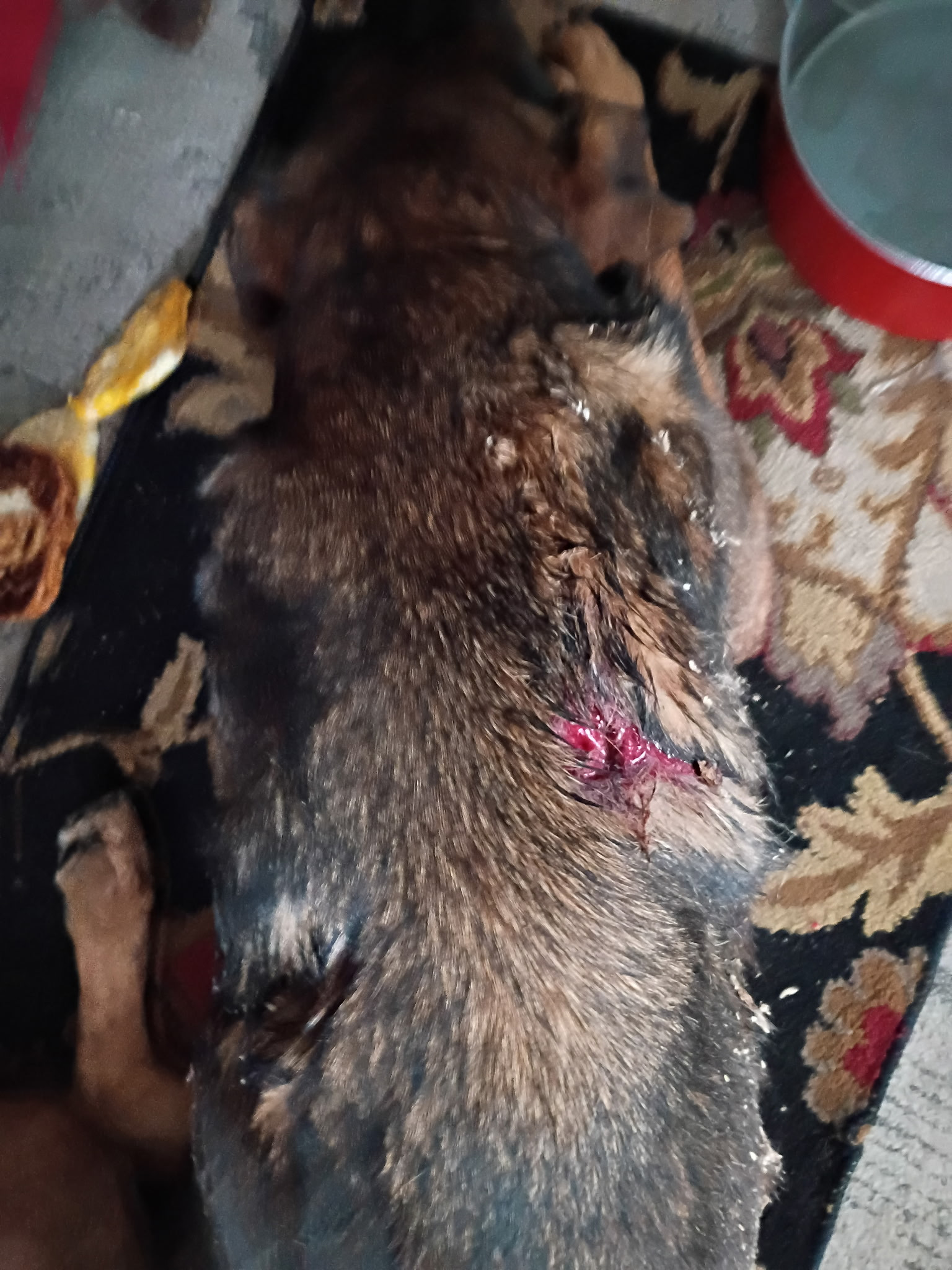 She was breathing alright and walking, even tho limping, but walking. In the afternoon Johnna came back with the application and despite the pain Marley followed her all the way. It was heartbreaking to see how she still was happy being around us, her wound started to bleed again while she was sitting there. I handed Johnna dogfood and some woundspray ( ridicoulos, but all I had to offer in this moment of feeling totally helpless ) and asked her to keep her warm and that I would immediately submit the paperwork which I did a little later in the evening.